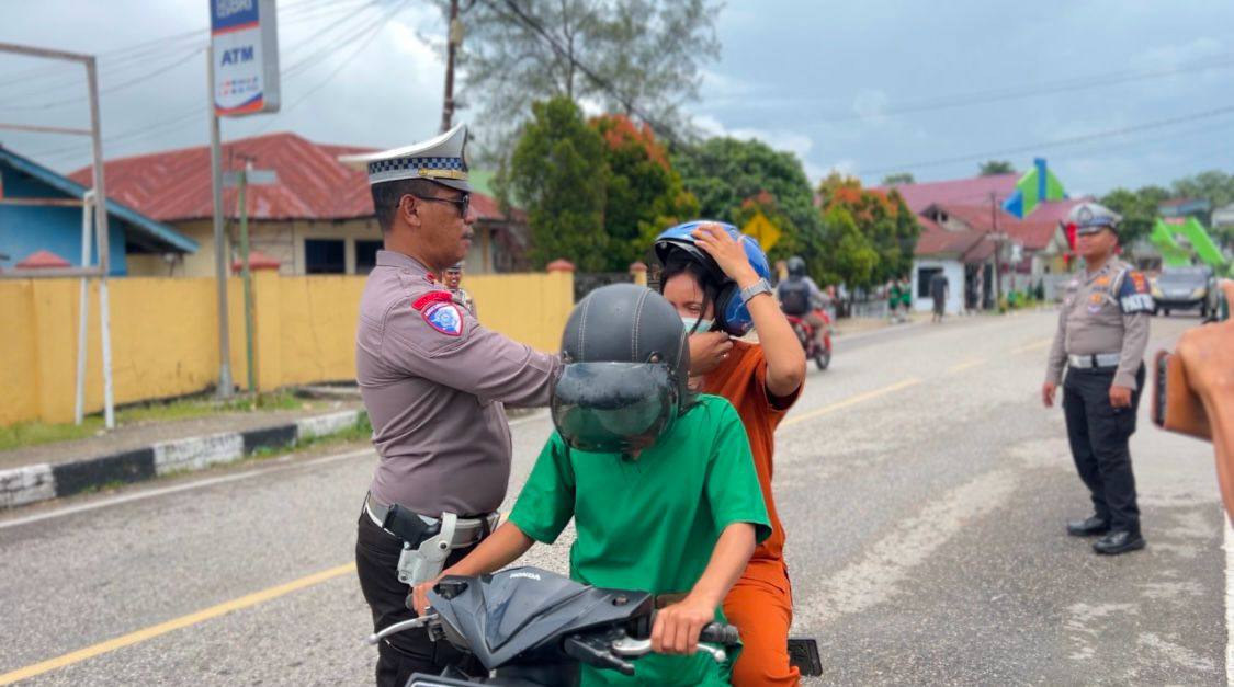 Sebanyak 20 unit helm diberikan secara cuma-cuma kepada pengguna jalan yang melintasi di lokasi tersebut. Operasi ini tidak hanya menargetkan penindakan terhadap pelanggaran, tetapi juga mengedepankan pendekatan persuasif dan edukatif kepada pengguna jalan.