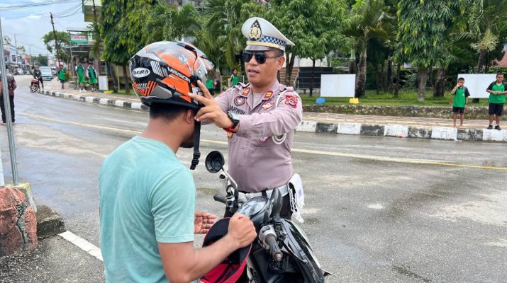 Kasat Lantas Polres Sumba Barat Bagikan Helm Gratis Dalam Operasi Keselamatan 2025